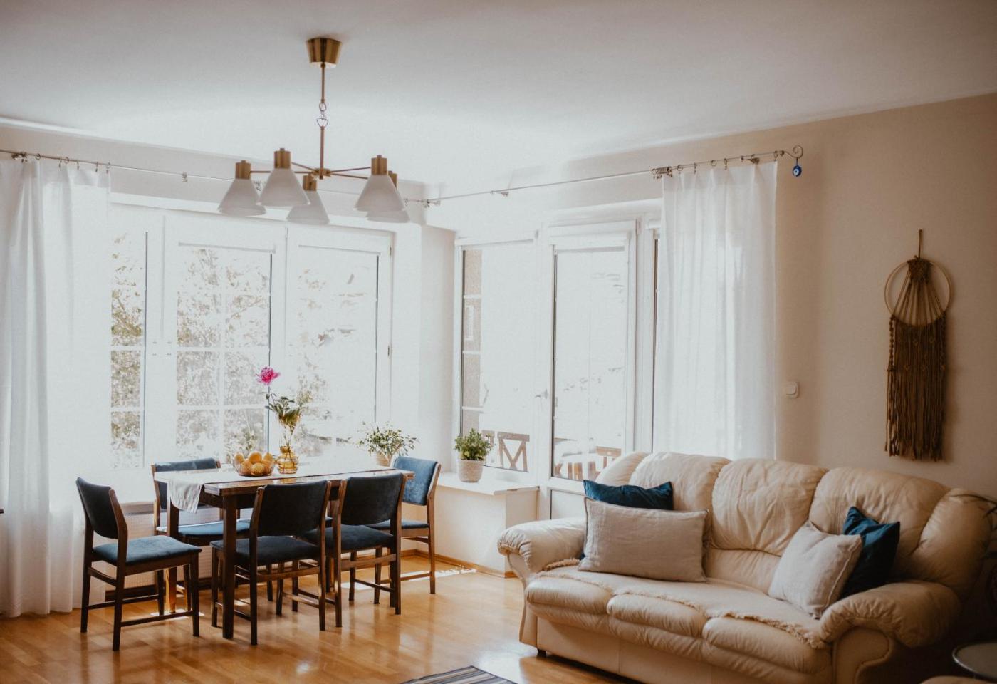 Dom z 3 sypialniami. This holiday homes special feature is the fireplace. This spacious holiday home comprises 2 living rooms, 3 separate bedrooms and 2 bathrooms with a bath and a shower. The well-fitted kitchen features a stovetop, a refrigerator, a dishwasher and kitchenware. Featuring a terrace with garden views, this holiday home also provides a private entrance and a flat-screen TV. The unit offers 8 beds. Dom wakacyjny - 6 osobowy. Powierzchnia pokoju ok.: 140 mkw.