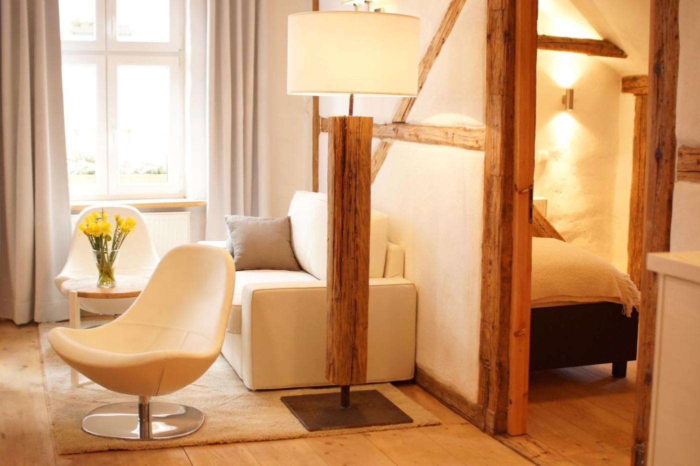 Apartament typu Deluxe. Featuring a private entrance, this apartment also comprises 2 bedrooms, a seating area and 1 bathroom with a walk-in shower and a hairdryer. Meals can be prepared in the kitchenette, which comes with a stovetop, a refrigerator and kitchenware. The apartment provides a flat-screen TV with satellite channels, soundproof walls, a tea and coffee maker, a dining area as well as ancourtyard view. The unit offers 2 beds. Apartament - 4 osobowy. Powierzchnia pokoju ok.: 57 mkw. ;